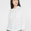 - Áo sơ mi nữ dài tay, cổ đức, thêu hình ở ve cổ áo, phom dáng suông.